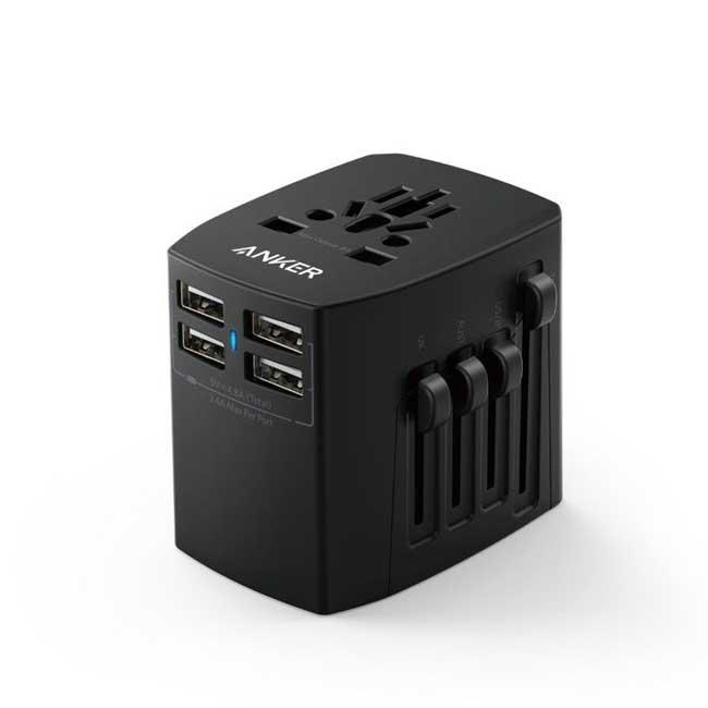 - انكر باوربورت شاحن سفرمع 4 منافذ يو اس بي- الاسود