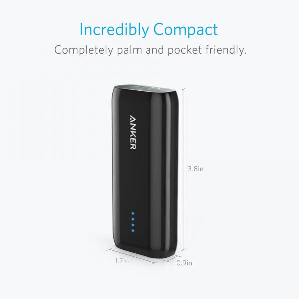 الميزات :: - Anker Astro E1 5200mAh Candy bar-Sized Ultra Compact Portable Charger (بنك طاقة خارجي للبطارية) مع تقنية PowerIQ للشحن عالي السرعة. - يكتشف جهازك ليقدم أسرع سرعة شحن ممكنة تصل إلى 2 أمبير (أربع مرات أسرع من منفذ USB بالكمبيوتر). لا يدعم الشحن السريع Qualcomm. - سعة عالية: أضف شحنتين كاملتين تقريبًا إلى iPhone 7 أو 6s أو شحنة كاملة واحدة على الأقل لهاتف 7 Plus أو Galaxy S7 أو Nexus 5 أو أي هاتف ذكي آخر. أو ما يقرب من 70٪ شحن لجهاز iPad mini 3.