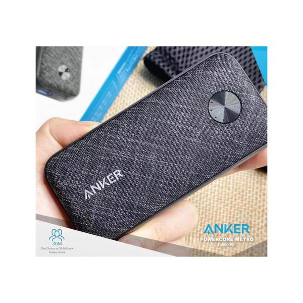 بطارية متنقلة بقوة ١٠٠٠٠ من شركة أنكر باور كور ميترو إسينشيال اللون : الأسود به عدد ٢ مخارج الأول : بي دي الثاني : يو أس بي نحيفة وخفيفة الوزن مصنوعة من النسيج الناعم الأنيق مع البلاستيك المقاوم للصدمات والخدوش