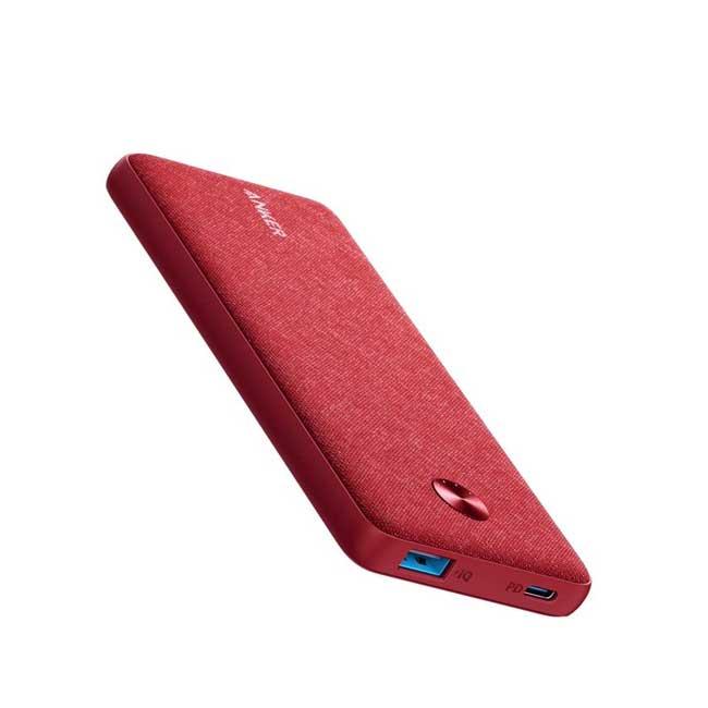 بطارية متنقلة بقوة ٢٠٠٠٠ من شركة أنكر باور كور ميترو إسينشيال اللون : الأحمر به عدد ٢ مخارج للشحن الأول : بي دي الثاني : يو أس بي نحيفة و خفيفة الوزن