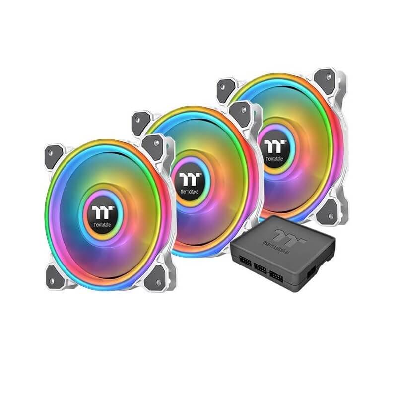 تم تصميم مروحة المبرد الرباعية من Thermaltake Riing مع 4 حلقات LED مستقلة بإجمالي 54 مصباح LED و 16.8 مليون تركيبة لونية. المروحة غير مسموعة تقريبًا أثناء التشغيل وتدعم برنامج التحرير الضوئي NeonMaker ونظام TT RGB PLUS Ecosystem.
