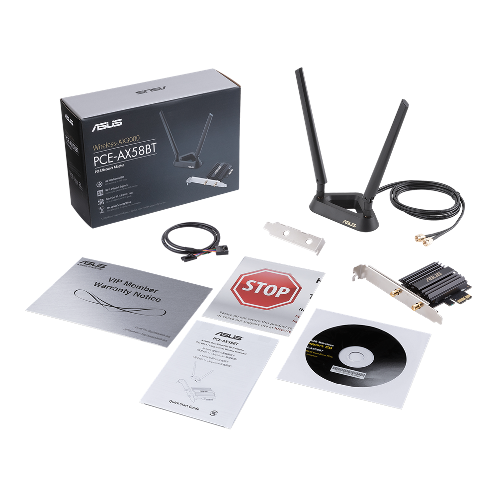 - بطاقة محول لاسلكي ASUS AX3000 WiFi6 Bluetooth 5.0 PCIe ، PCE-AX58BT