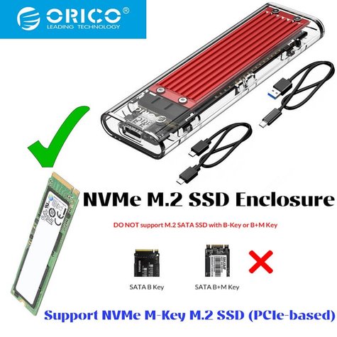 - Orico TCM2 USBC TypeC External Case NVMe M.2 SSD Enclosure Aluminum Alloy, RED