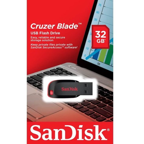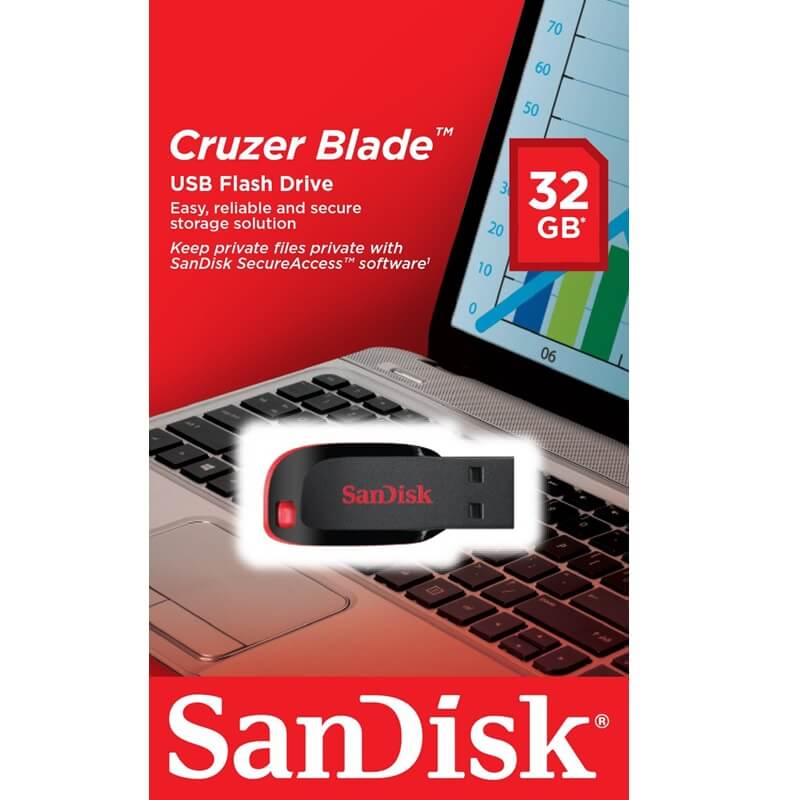 - SanDisk 32GB Cruzer Blade, USB Flash Drive