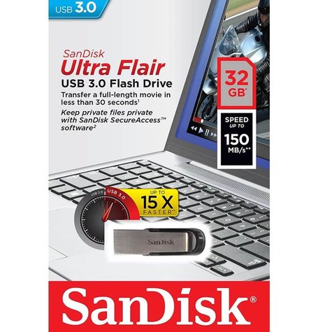 SanDisk 32GB Ultra Flair, 150MB/s, USB 3.0, USB Flash Memory, Flash Drive, UltraFlair