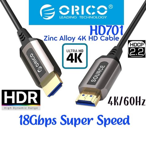 Orico HDMI Cable 4K HDR HDCP2.2 Gold Plated, Stranded Tinned Copper Wire, Zinc Alloy, 4.5mm, 18Gbps, 3D, Surround Sound, HD701, 3Meter