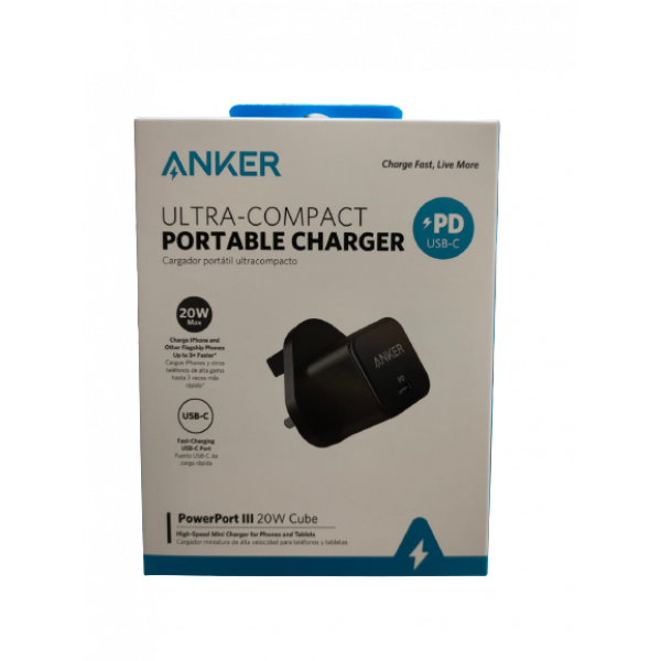 أنكر باور بورت III 20 واط مكعب - أسود شاحن حائط PD بقدرة 20 وات، قابس USB C، نظام أمان مدمج ومحمول متعدد الحماية، تصميم خفيف الوزن وصغير الحجم، تقنية PowerIQ 3.0