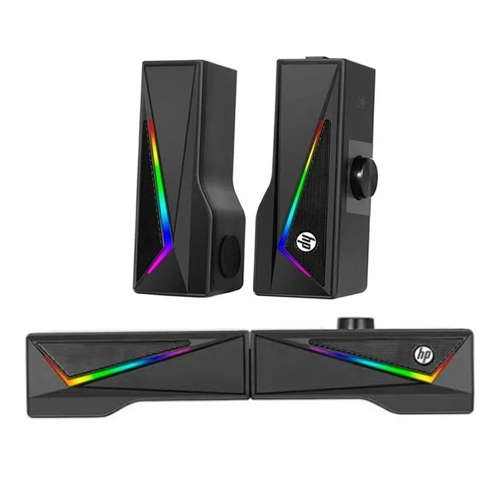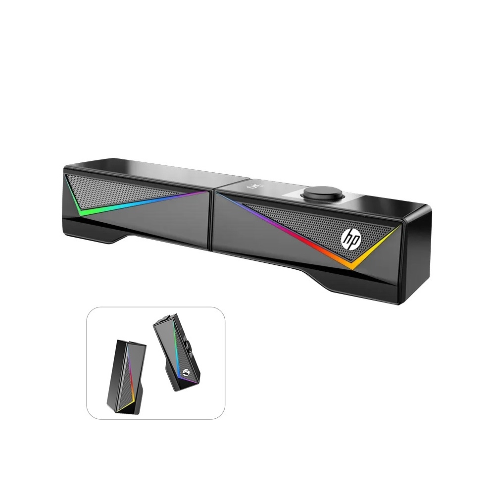 - مكبر صوت HP DHE6005 RGB، مقاس 3.5 ملم ومزود بمنفذ USB