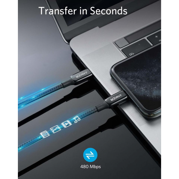 أنكر باورلاين + III لايتنينج إلى النوع C (3 قدم) مصمم ليدوم طويلاً: مع عمر افتراضي يصل إلى 25000 انحناء، من المحتمل أن يدوم كابل شاحن iPhone هذا أكثر من هاتفك. أنحف من أي وقت مضى: الهيكل الداخلي المُحسّن يعني أن أحدث جيل من Power Line أصبح أنحف من سابقاته - دون أي انخفاض في القوة. متوافق معتمد: معتمد من Mfi للتوافق التام مع أجهزة IOS-Lightning، مما يضمن الشحن الآمن بأعلى سرعة ممكنة. بيانات عالية السرعة: انقل الأفلام أو الموسيقى أو مكتبة الصور بأكملها في ثوانٍ بسرعات نقل تبلغ 480 ميجابت في الثانية.