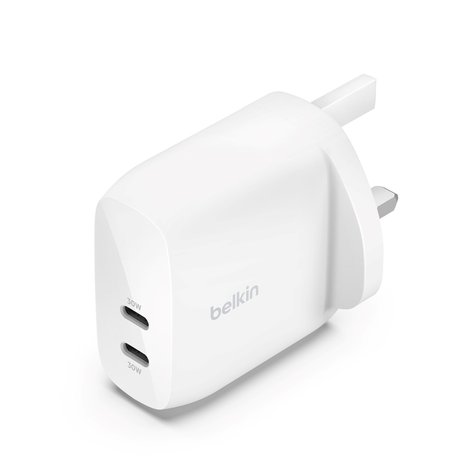 بلكين WCB010 مصدر طاقة قابل للبرمجة (PPS) مخرج كل منفذ PD 30 وات كحد أقصى شحن سريع توصيل الطاقة 2 منافذ USB-C (PD 3.1)