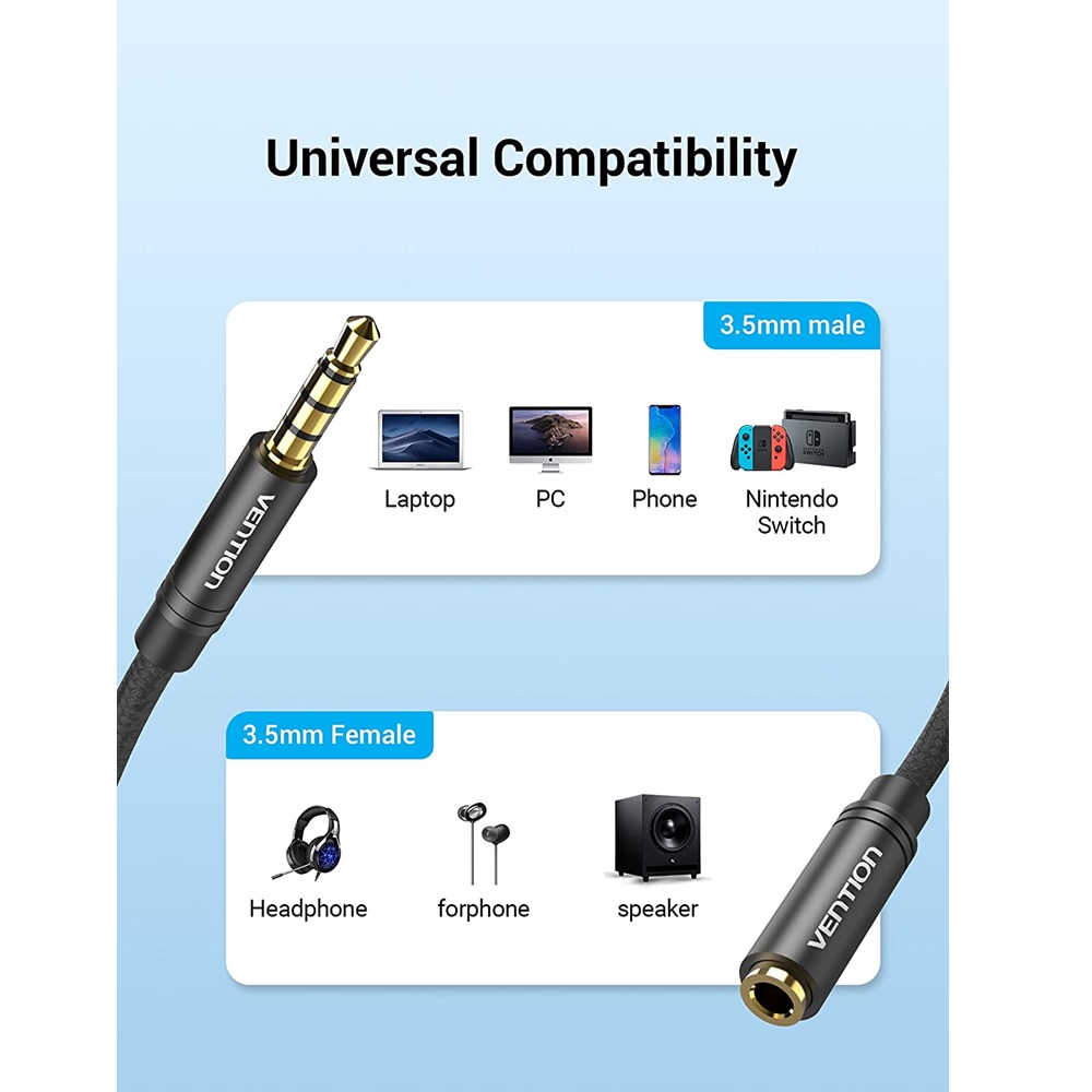 The Vention 3.5mm Audio Extension Cable is a true audio companion, compatible with a wide range of devices: