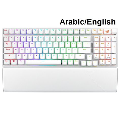 لوحة مفاتيح الألعاب اللاسلكية ASUS X901 ROG Strix Scope II 96، ROG NX Snow Switch، باللون الأبيض، باللغة العربية/الإنجليزية