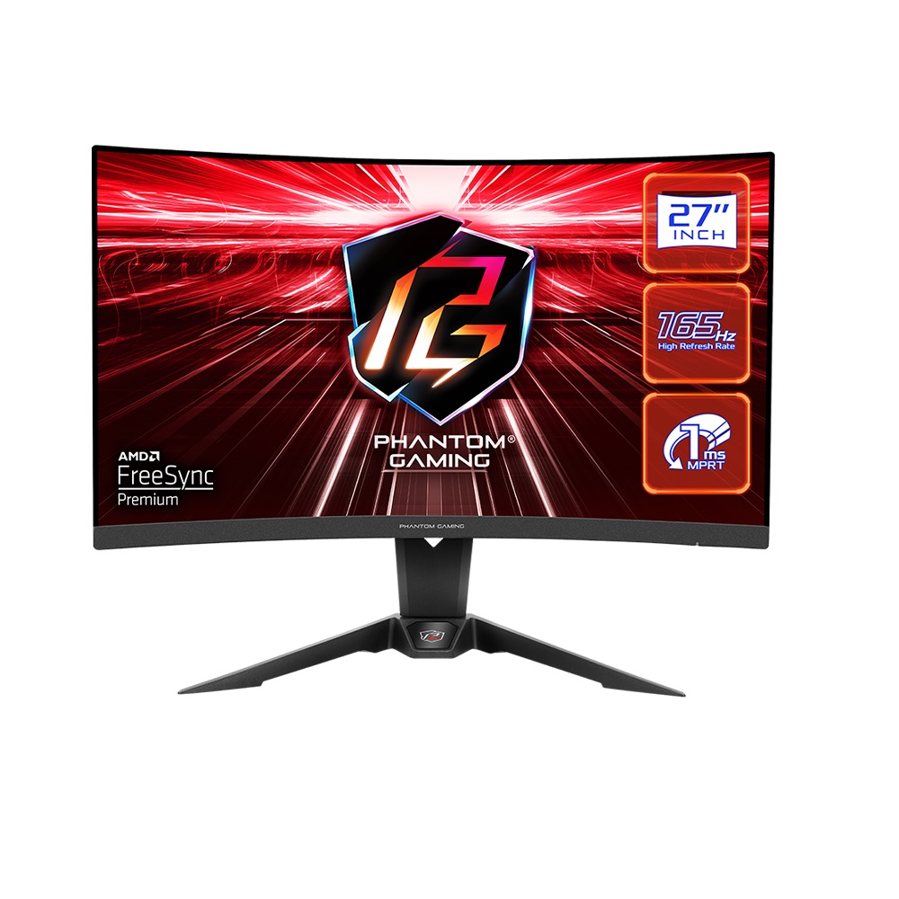 - شاشة ألعاب ASRock PG27Q15R2A مقاس 27 بوصة، 165 هرتز، 1 مللي ثانية، منحنية بدقة 2K، مكبر صوت VA HDR400