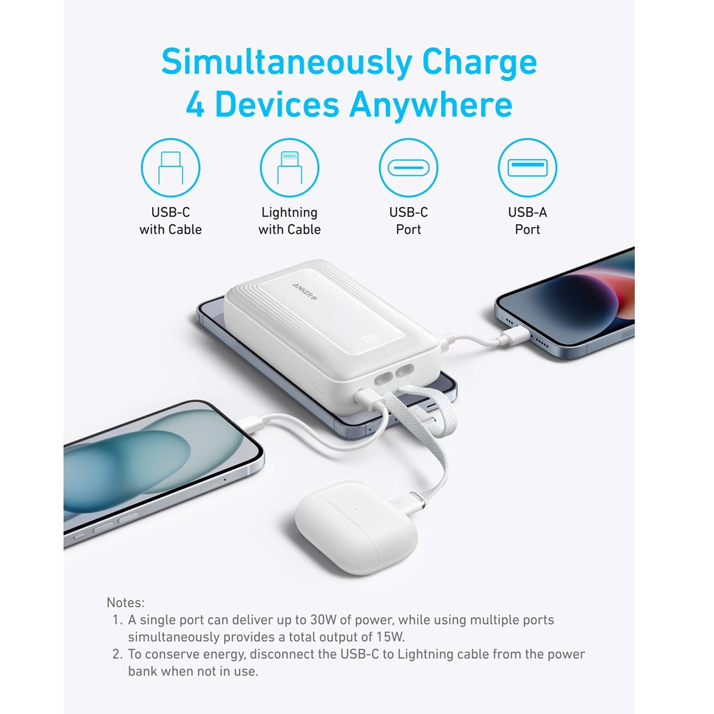 أنكر A1681H51 طاقة شحن عالية السرعة بقدرة 30 واط سعة 20,000mAh لطاقة تدوم طوال اليوم شحن 4 أجهزة في وقت واحد