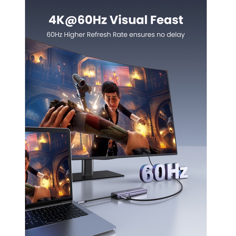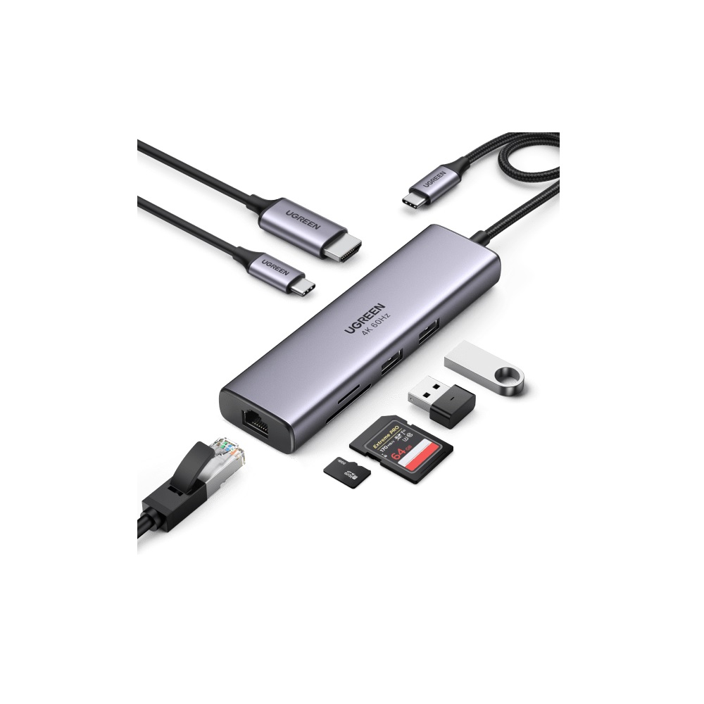 UGREEN اتصال 7 في 1 شحن بقوة 100 واط / عرض بدقة 4K@60Hz / منفذ RJ45