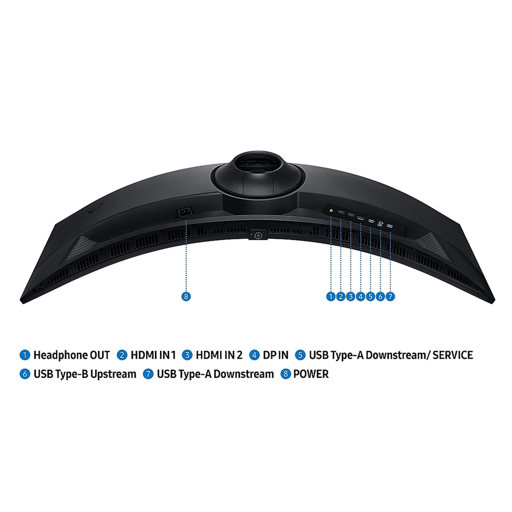 سامسونج شاشة منحنية فائقة العرض مقاس 49 بوصة، 144 هرتز، زمن استجابة 1 مللي ثانية الدقة: 5120×1440 (DQHD) انحناء الشاشة: 1000R خاصية عرض الصور جنبًا إلى جنب (PbP) خاصية عرض الصورة داخل صورة (PiP) إصدار HDMI: 2.1 نوع اللوحة: VA تقنية HDR600