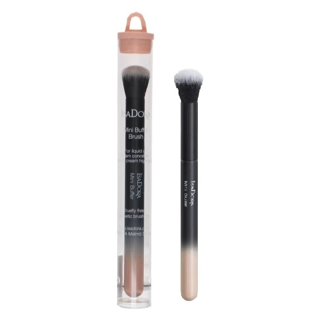 فرشاة إيزادورا ميني بافر هي فرشاة مكياج ناعمة ومدمجة تُساعدكِ على وضع ودمج الكونسيلر بدقة عالية. صُممت هذه الفرشاة لدمج الكونسيلر في مناطق أصغر وأكثر تحديدًا. تتميز الفرشاة بشعيرات مدمجة وقوية تُسهّل وضع الكونسيلر ودمجه حول العينين والفم والأنف، على سبيل المثال. كما يُمكن استخدامها لوضع الهايلايتر على عظام الخد. كما تُساعد فرشاة المكياج على توزيع المكياج بالتساوي في المناطق التي بها عيوب.