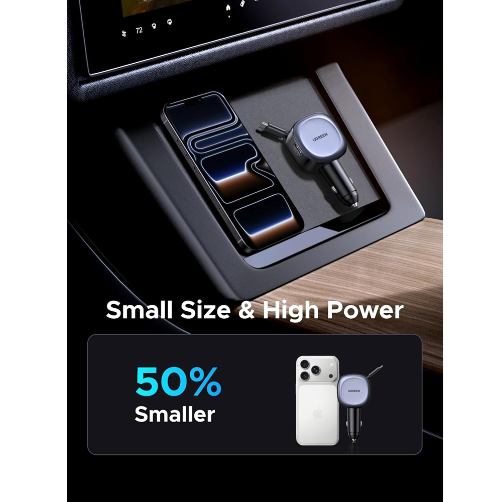 شاحن سيارة سريع UGREEN EC601 بقدرة 75 واط مع كابل USB-C قابل للسحب
