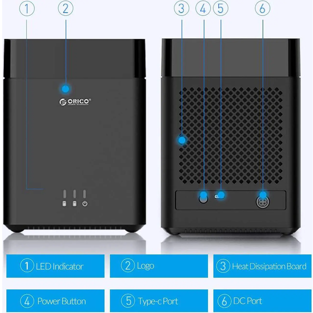 - أوريكو DS200C3 حاوية خارجية للأقراص الصلبة بمنفذ USB-C ثنائية الفتحات (2-Bay)