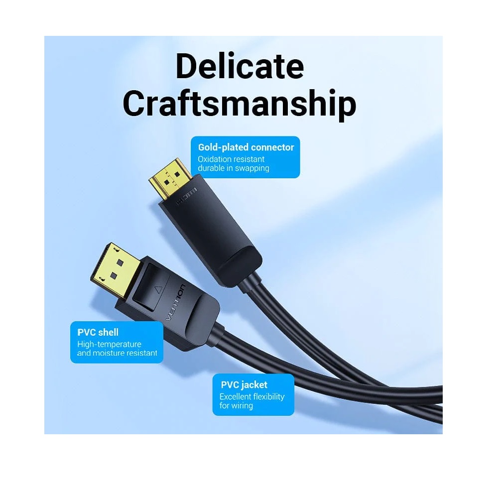- كابل Vention DisplayPort إلى HDMI بدقة 4K بطول 1.5 متر (مطلي بالذهب)