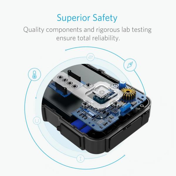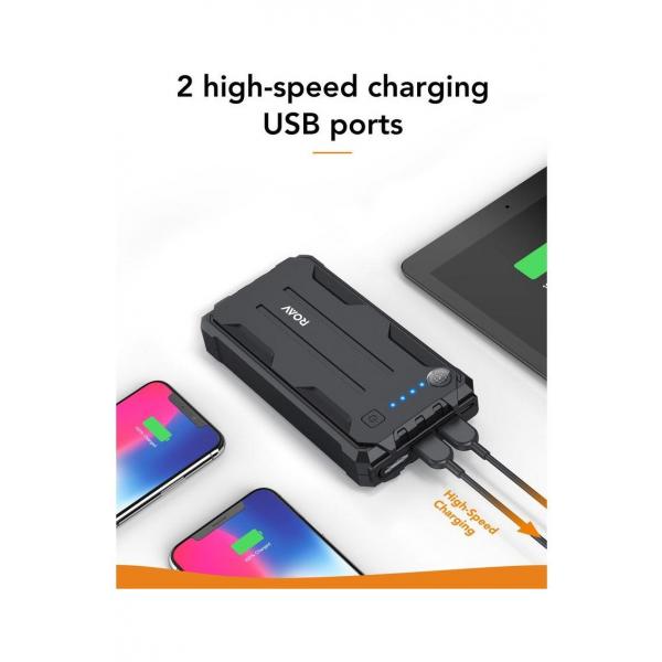 Running gas engines up to 6.0L or diesel engines up to 3.0L up to 15 times on a single charge Roav Jump Starter Pro USB to USB-C Connection cable with clips and carrying case Superior safety: Premium materials and protective measures to protect you from reverse connections, flashbacks, low voltage, Overheating ensures your safety