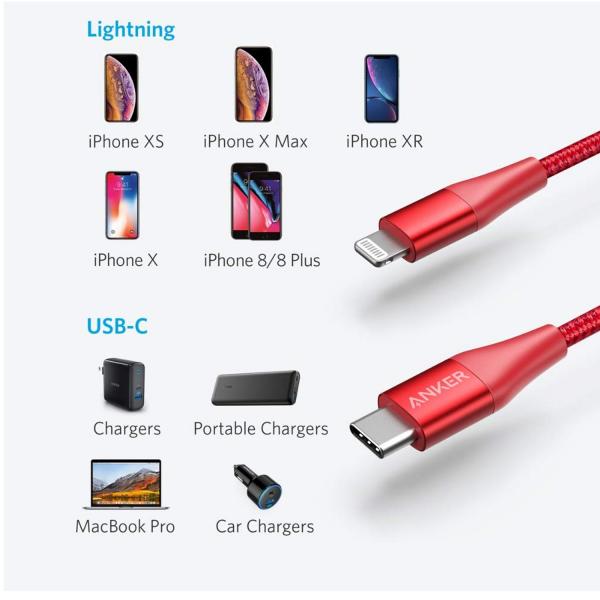 • Anker PowerLine + II USB-C to Lightning (1.8m/6ft) -Red