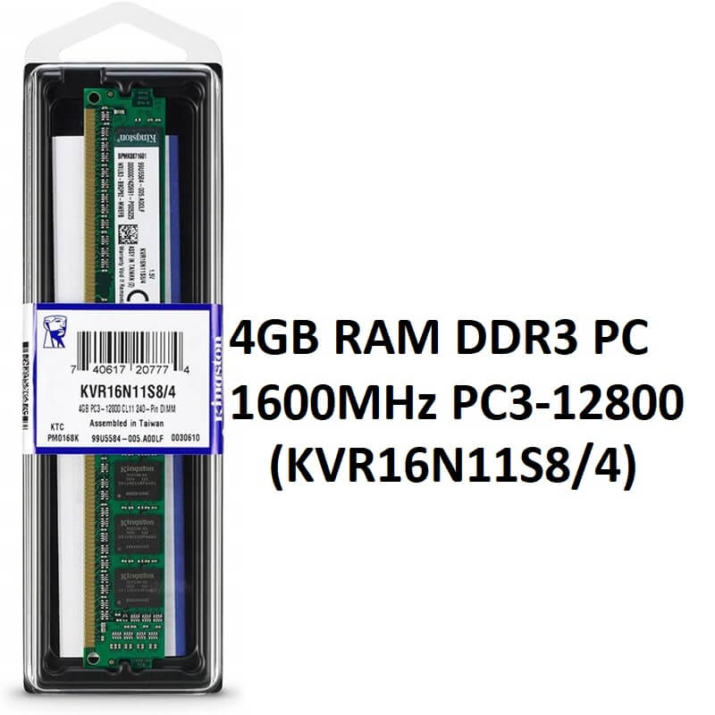 - Kingston 4GB RAM 1600MHz DDR3 PC Desktop, PC3-12800, Non-ECC