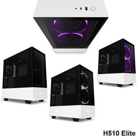- he H510 Elite compact ATX mid-tower is perfect for your RGB build. Behind the flush-mounted, tempered glass front panel, you’ll discover our renowned Aer RGB 2 fans keeping your components brilliantly cool. Well-engineered airflow, removable radiator mounting bracket, multiple fan filters, vertical GPU mount, a front panel USB-C connector, and an all-steel and tempered glass construction are just some of the key features you’ll get. The H510 Elite also includes the NZXT Smart Device V2, powering the built-in RGB light strips and case fans.