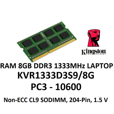 RAM 8GB DDR3 LAPTOP 1333MHz, PC3 10600, NON ECC, Kingston
