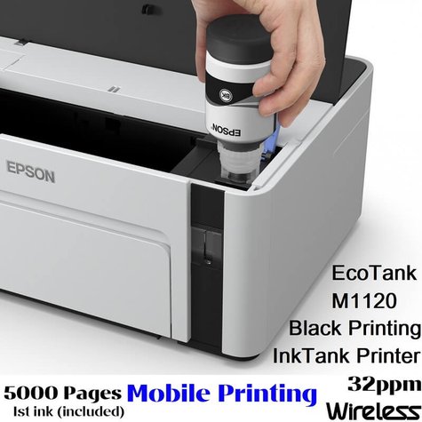 Epson M1120 WiFi EcoTank Mono Ink Tank System Wireless Printer, 32ppm Black