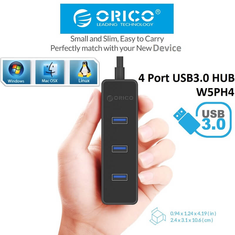 - Orico 4Port USB3.0 Hub Ultra Slim Super Speed Plug N Play, W5P
