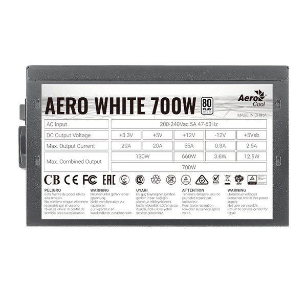 The AERO WHITE is 80Plus 230V EU White Certified for up to 87%+ efficiency, rivaling the efficiency performance of 80Plus 230V EU Bronze PSUs.