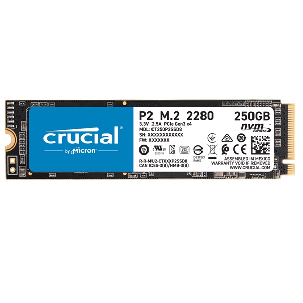 Crucial 250GB P2 NVMe PCIe M.2 Internal SSD, 2400MB/s