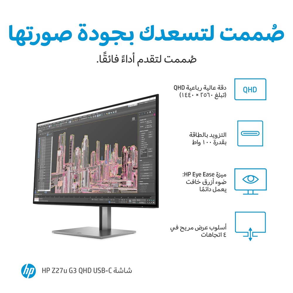 - HP 27 Z27u G3 IPS 2K Rotatable USB-C Monitor – Silver