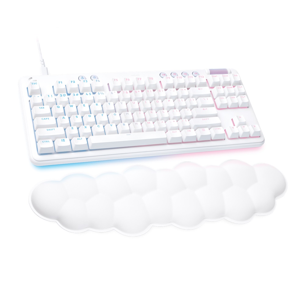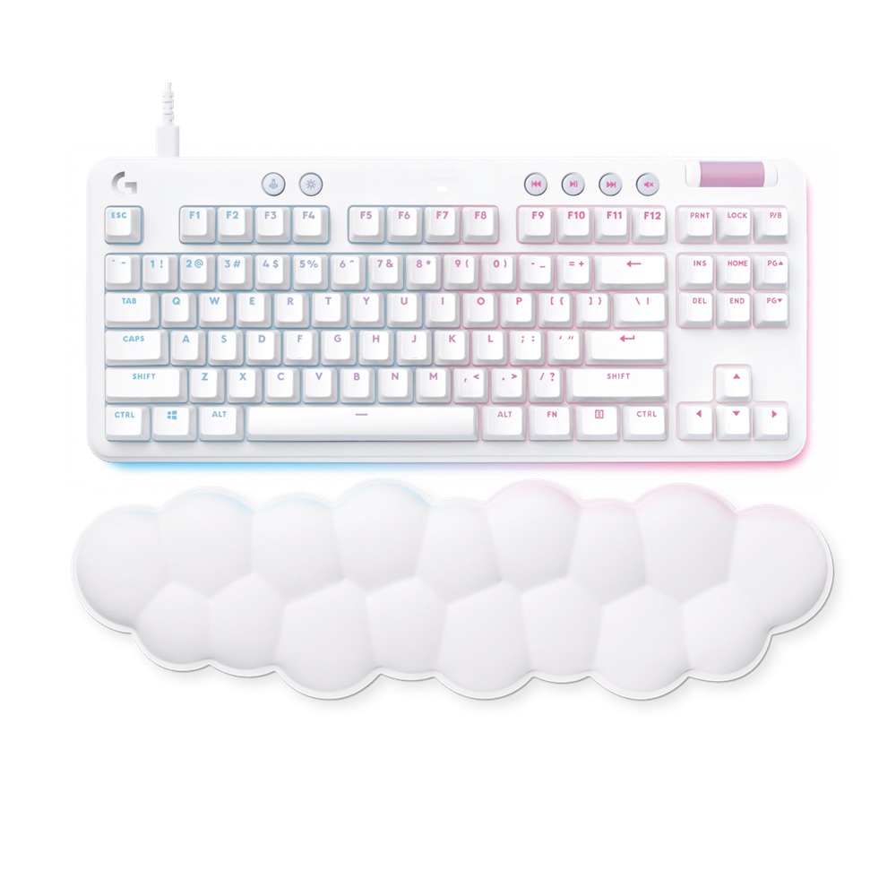 From the Aurora Collection, G713 is a wired, compact TKL keyboard designed for comfort with included cloud-soft palm rest. Fully equipped with ethereal RGB lighting and your choice of GX mechanical switches. Comes in White Mist. Colorway accessories sold separately.