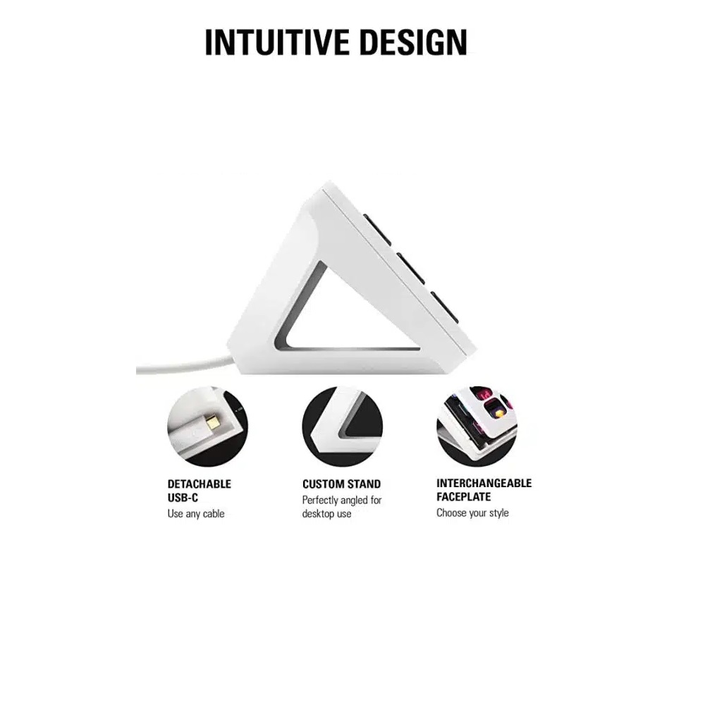 15 customizable LCD keys to control apps, tools and platforms Switch out the removable faceplate for different designs and modification Easily customize keys to trigger single or multiple actions, launch social posts, adjust audio, turn on lights, and much more Access powerful plugins for Elgato 4KCU, OBS, Streamlabs, Twitch, YouTube, Twitter, Spotify, Philips Hue, and many more Set Hotkey Actions to streamline your film editing, music production, photography workflow, etc. Create Smart Profiles to automatically switch between unique key configurations for different apps Use the all-powerful Stream Deck app to set up actions and personalize keys with custom icons Hit the Stream Deck Store to download plugins, icon packs, thousands of royalty free tracks, effects, and more Detachable Stand and USB-C cable included