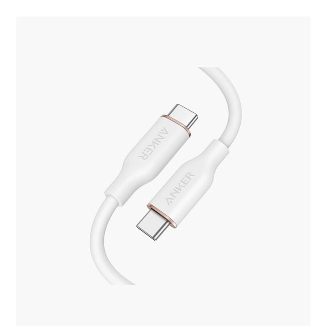 Anker PowerLine III Flow USB-C to USB-C 100W (1.8m/6ft) -White Soft Touch Silicone Finish 25,000-bend lifespan Bend It, Twist It, Flex It Tangle-free. Supports a Max power Output of 100W. Compatible with USB-C device. Soft Touch Cable. Extremely Bendable. High-Speed Data Transfer. .25Mins Fast Charging