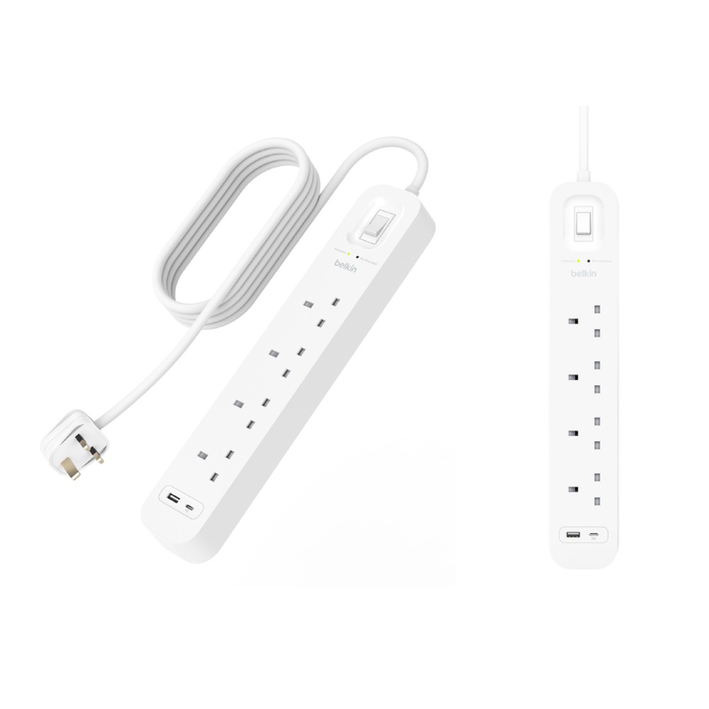 - Belkin Connect 4 Ports Power Extension Strip Surge Protector with USB-C and USB-A