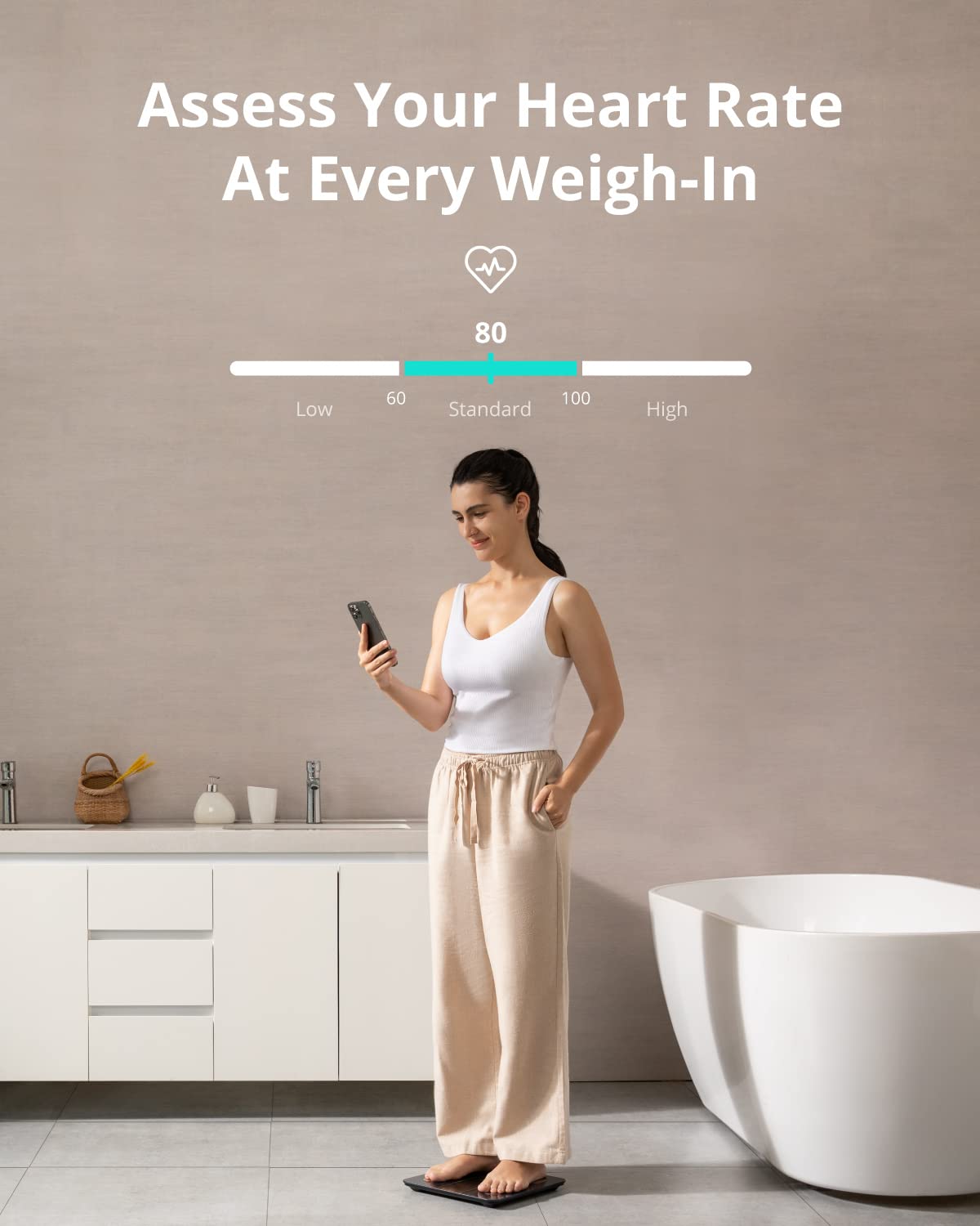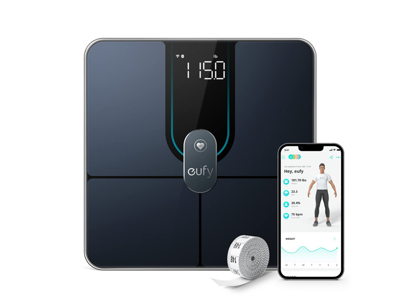 Eufy Smart Scale P2 Pro -Black Analyzes your whole body: track your progress from day to day and monitor sixteen metrics in detail, including weight, body fat, BMI, muscle and bone mass and even your resting heart rate. Advanced technology for high accuracy: The sensitive ITO coating technology on the Smart Scale P2 Pro allows you to stand anywhere to let the Bioelectrical Impedance Analysis (BIA) perform informative measurements. The high-precision manganese steel sensors can accurately detect subtle weight changes up to 50g, so you can celebrate even small victories. Virtual 3D Model: See your body’s progress through your fitness journey with a virtual U-Body 3D model of yourself. Your avatar matches the proportions and measurements of the biceps, chest, waist, hips, and thighs you enter, detailing your changes. Sync with third-party apps: Connect to the EufyLife app via Wi-Fi or Bluetooth to automatically upload data. You can also sync EufyLife with Apple Health, Google Fit and Fitbit to keep all your progress in one place. For the whole family: add unlimited users to the app and follow everyone’s personal fitness journey. With baby mode and pet mode, you can monitor the healthy daily growth of your baby or pet.