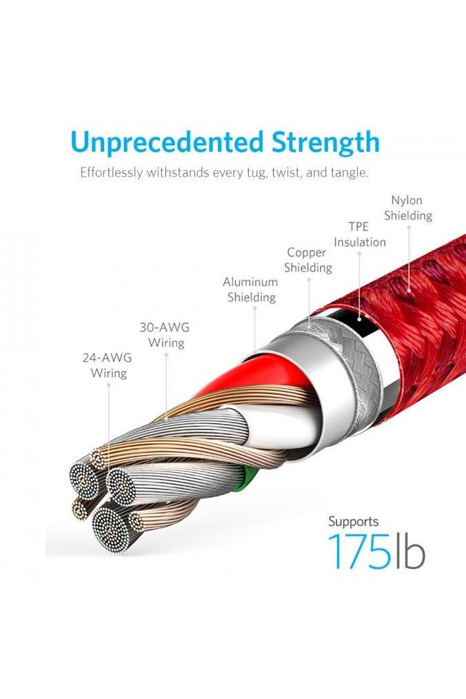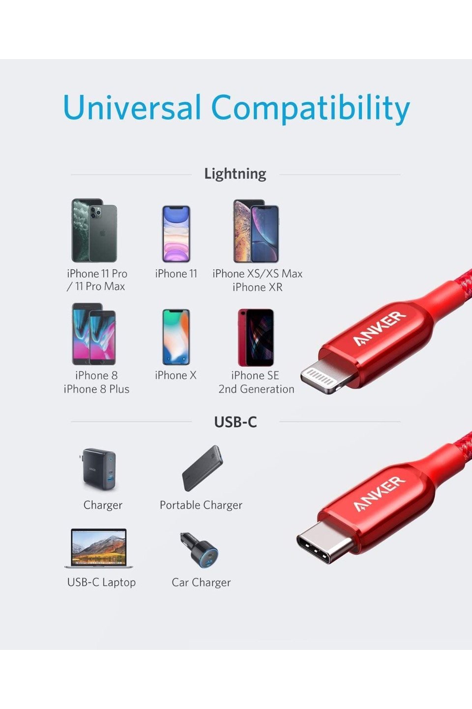 Anker PowerLine + III USB-C to Lightning (1.8m/6ft) – Red PowerLine+ III USB-C to Lightning Cable The Hard-Wearing, High-Speed Compatible Lightning Cable Strong and Durable An optimized internal structure means the latest generation of PowerLine has become even slimmer than ever before—without sacrificing strength. Combined with the 35,000-bend lifespan, PowerLine+ III is designed to withstand every twist, tug, and tangle. Supports High-Speed Charging Charge iPhone 8 or later to 50% in just 30 minutes when paired with an 18W or higher USB-C Power Delivery charger. (Charger not included) Universal Compatibility MFi certified to work flawlessly with any device that uses a Lightning connector. A Cable for Life We’re so confident in PowerLine+ III, we are offering a hassle-free replacement for all quality issues. Not for half a year, not for 18 months, but for an entire lifetime. It’s the only cable you will ever need to buy. Curved Stainless Steel Design PowerLine III’s curved, stainless-steel edges are designed to perfectly match the exterior of high-end phones and laptops. Compatibility Power Delivery Compatible iOS Devices: iPhone 8, 8 Plus, X, XS, XR, XS Max, iPad Pro (10.5-inch), iPad Pro(12.9-inch) 1st generation, iPad Pro (12.9-inch) 2nd generation, AirPods, AirPods with Wireless Charging Case and AirPods Pro