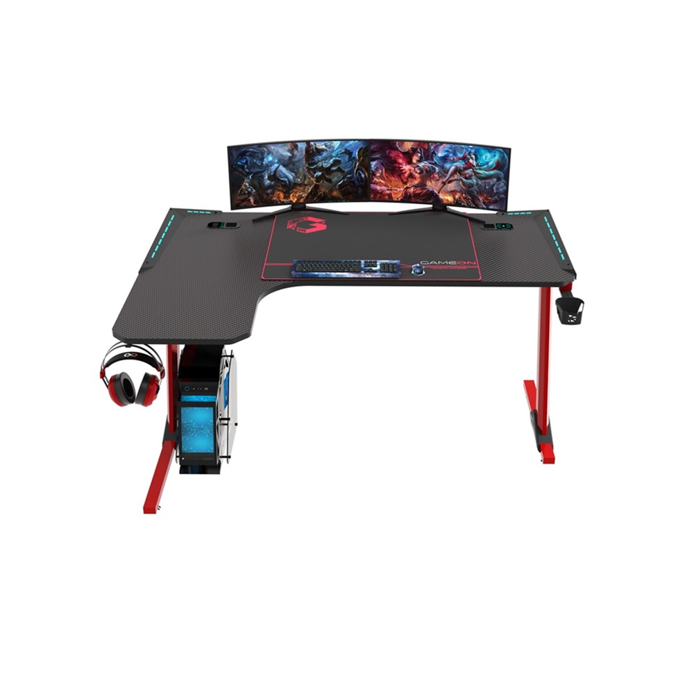 GameOn Phantom XL-L Series L-Shaped RGB Flowing Light Gaming Desk Table, 140cm – Left Side