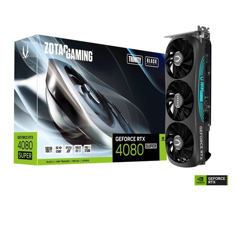 A balanced take on the signature aerodynamic-inspired design, the ZOTAC GAMING GeForce RTX 4080 SUPER Trinity Black Edition 16GB GDDR6X utilizes the state-of-the-art NVIDIA Ada Lovelace architecture to give gamers cutting-edge features such as DLSS 3.5 and real-time raytracing. Complete with the advanced cooling design derived from flagship models, the Trinity Black Edition packs the punch to deliver blistering FPS in the latest titles.