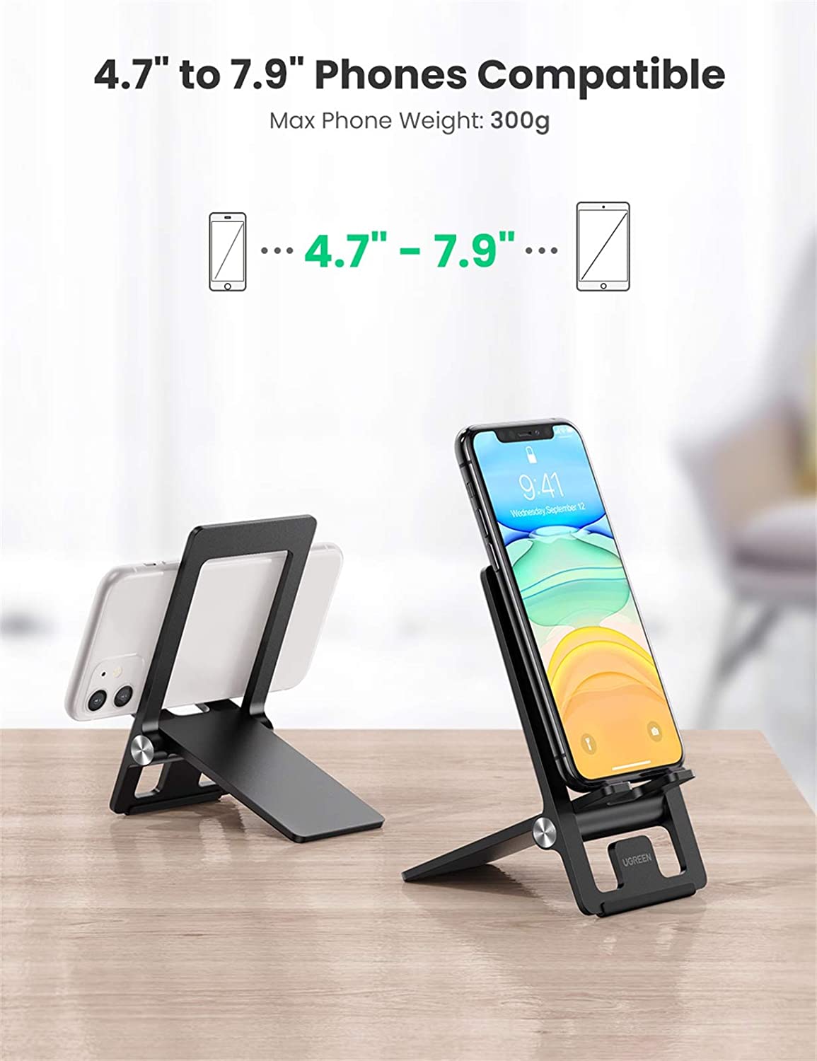 - 【Multi-angle Adjustable】: Simply adjust and choose your preferred viewing angles. UGREEN desktop phone holder stand holds your smart phone at a comfortable angle, ideal for watching video, reading, video recording, browsing the web, playing games or facetime call.
