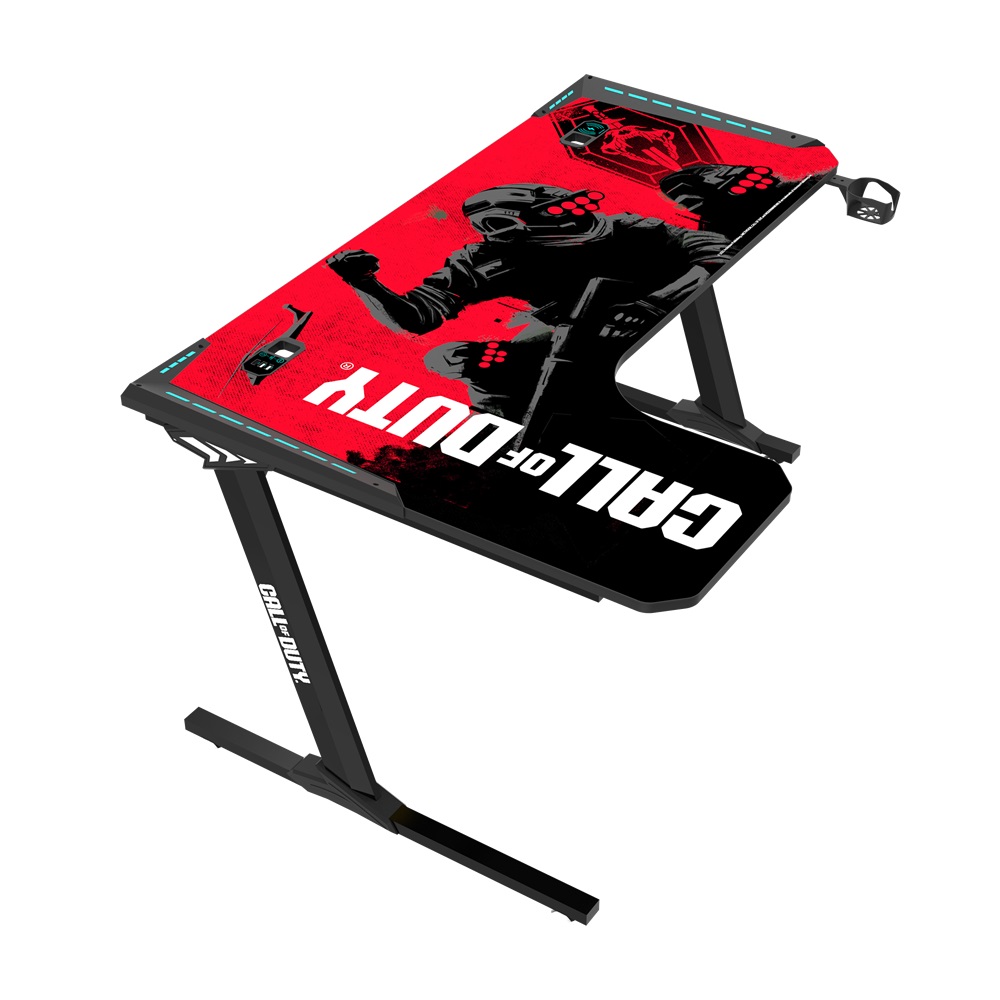 This Call of Duty themed desk is specially designed to provide more space to store your equipment and allows a better posture for you. The cup holder and headphone hook keep your drinks and headphones right at your fingertips.