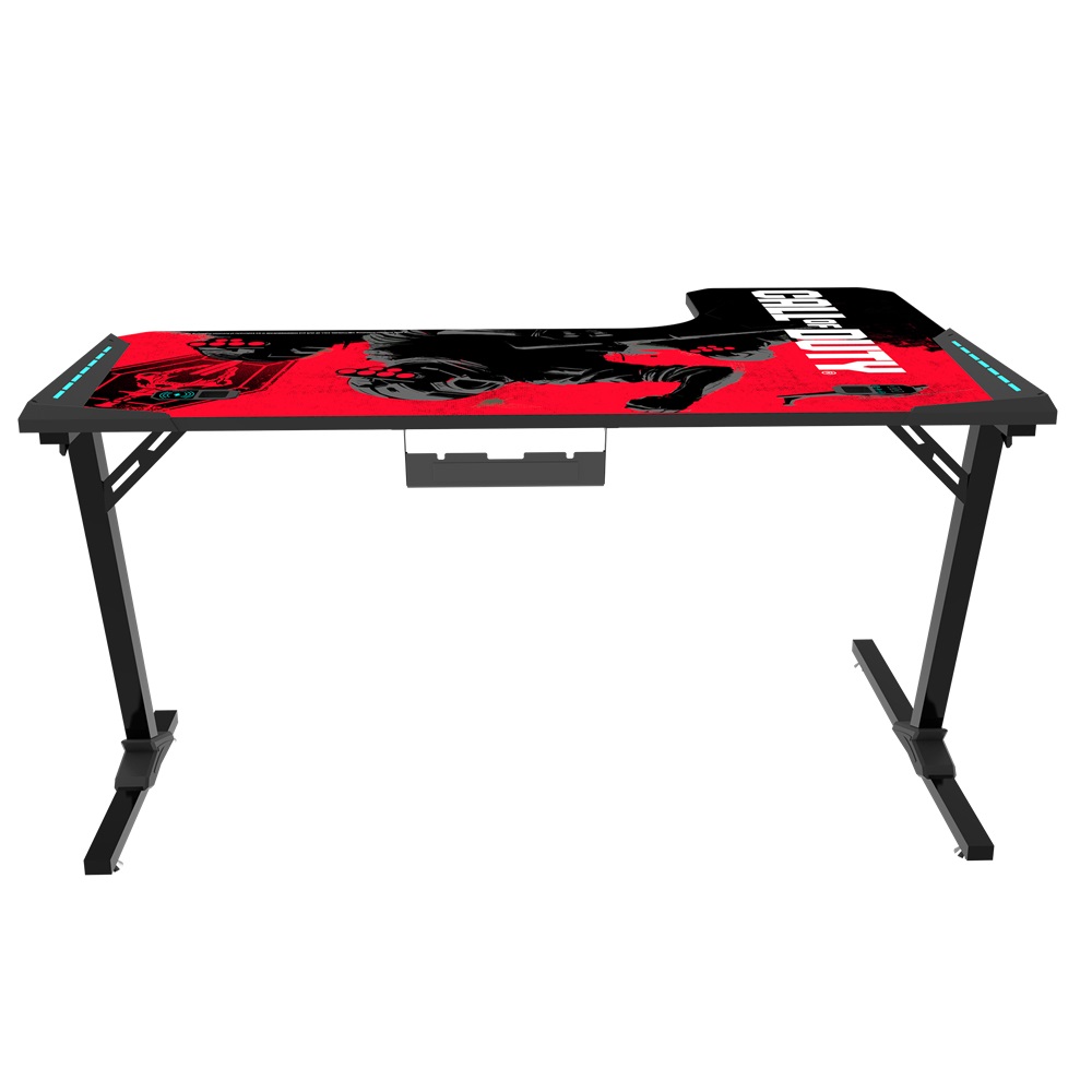 - GameOn Call Of Duty (COD) Phantom XL-L Series L-Shaped, Black/Red, RGB Flowing Light Gaming Desk With Mouse pad, Headphone Hook, Cup Holder, Cable Management, Gamepad Holder, Qi Wireless Charger & USB Hub