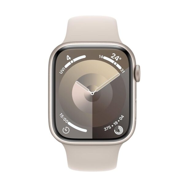 - Apple Watch Series 9, 45mm, Starlight Aluminum Case, Starlight Sport Band, (GPS + Cellular)