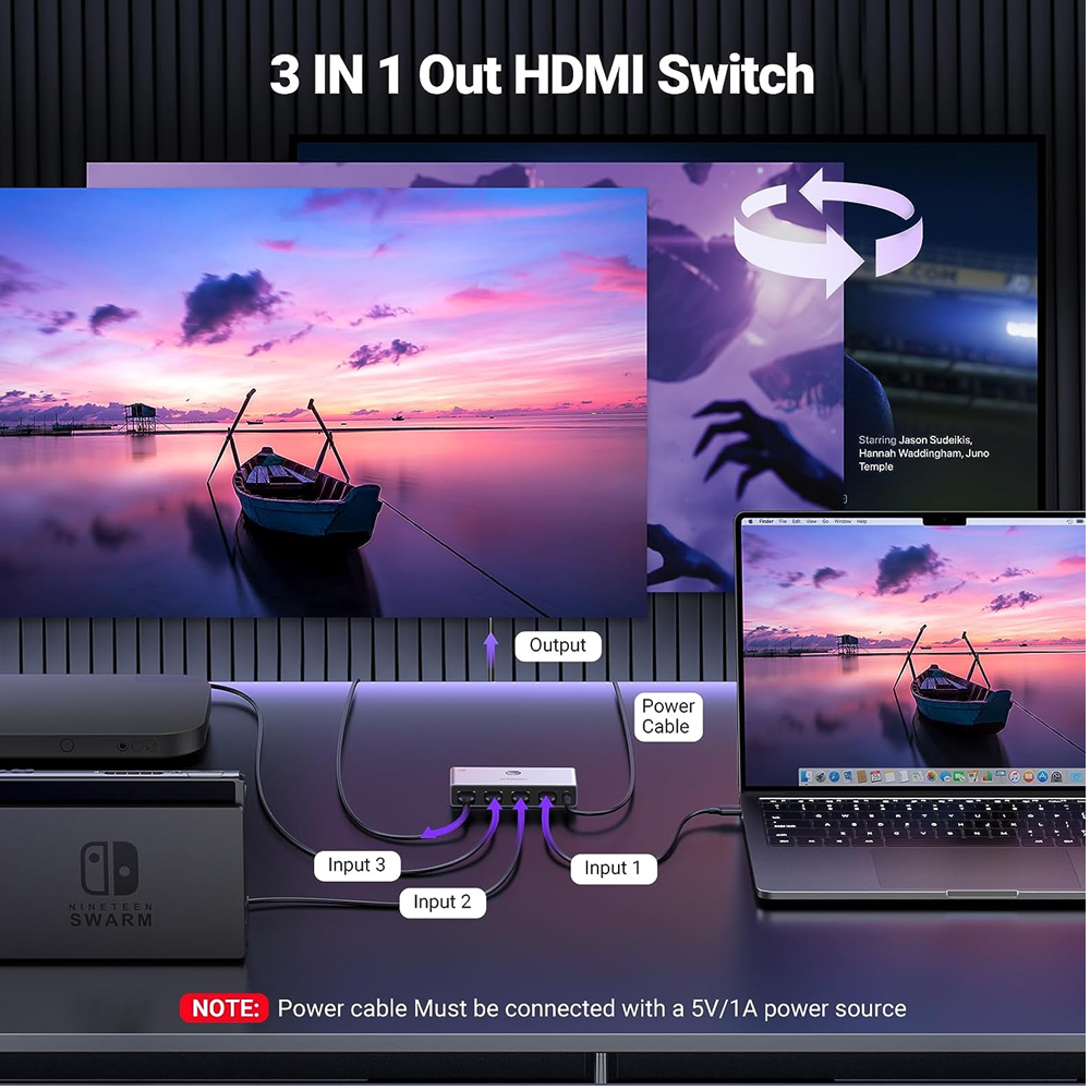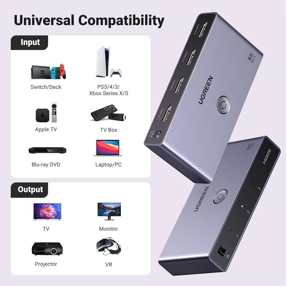 - UGREEN CM624 HDMI 2.1 3-Port Switch Aluminum Ultra HD 8K@60Hz 3 in 1 out