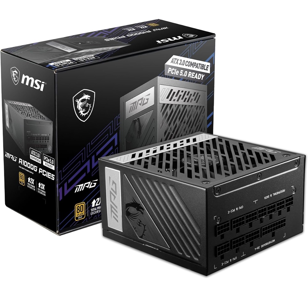 - MSI 1000W PSU MPG A1000G PCIE5 80Plus Gold Power Supply Flat Cables Full Modular