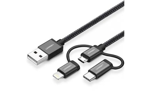 UGREEN Wired iPhone, resistant to cutting fast, made of aluminum, characterized by safe and fast charging, and smart. You can charge all versions of USB Micro _ Type C _ lightening