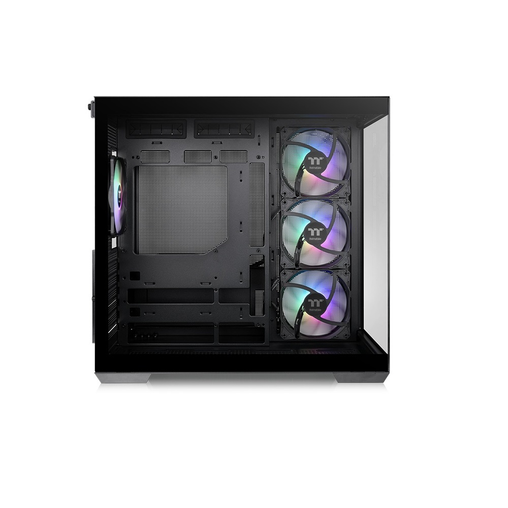 The The View 380 TG ARGB Mid Tower Chassis is a dual chamber ATX chassis that supports Hidden-Connector Motherboards from ASUS, MSI and GIGABYTE and comes with four Hydraulic Bearing 120mm ARGB Lite Fans. Its RGB lighting can be controlled by motherboard software from ASUS, GIGABYTE, MSI, and ASRock. Moreover, up to ten 120mm fans can be installed in the chassis, and up to one 360mm radiator can be placed on the top and one 280mm/240mm radiator at the right, giving end-users more flexibility to build their ideal configuration.